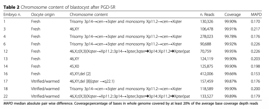 1 胚胎染色體狀態(tài)數(shù)據(jù):從表2中,11個活檢囊胚中,2個為46,XY正常男性,2個為46,XX平衡易位女性,4個為不平衡易位(3號染色體三體和X染色體單體),3個為非整倍體(如45,X0)。研究意義是通過NGS全面篩查染色體異常,識別可移植胚胎,但平衡易位女性胚胎表型不可預(yù)測,凸顯PGD-SR在性染色體-常染色體易位中的局限性。