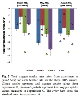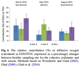 季節性信號顯著:所有沉積物類型都對春季浮游植物水華產生的有機質沉降有響應,表現為水華期總氧氣吸收速率的增加,證明了底棲系統與上層水體生產力的緊密耦合。
