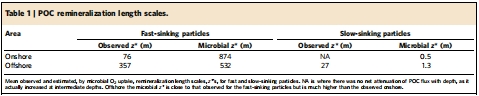 測量指標:根據POC通量垂直剖面(圖3)計算出的觀測RLS,以及根據微生物呼吸和沉降速率計算出的微生物理論RLS(表1)。