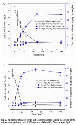 沉積物是AgNPs的重要匯和潛在熱點區(qū)域:研究表明AgNPs會迅速從水體沉降并富集在表層沉積物中,其濃度遠高于水體。因此,沉積物生態(tài)系統(tǒng)是評估AgNPs環(huán)境風(fēng)險的關(guān)鍵界面。