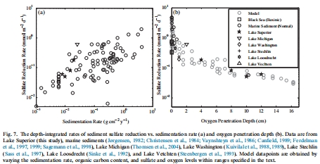 測量指標:收集已發表的來自海洋和淡水環境的沉積物硫酸鹽還原速率(SRR),并與氧滲透深度(OPD)和沉降速率進行關聯分析。