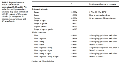 測量指標:總微囊藻毒素(MC)含量(沉積物中所有微囊藻細胞所含毒素總量)和毒素配額(平均每個細胞的毒素含量)。
