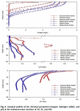 數據來源:圖6(夏季和冬季O?, H?S, pH的微電極剖面)。