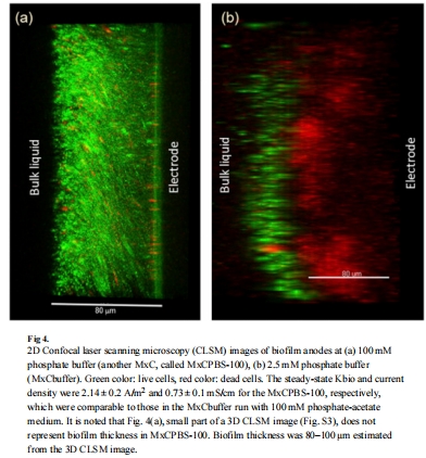 數據來源:圖4(caption: "2D Confocal laser scanning microscopy(CLSM) images of biofilm anodes...")。