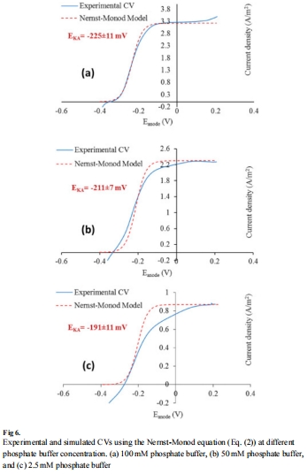 數據來源:圖6(caption: "Experimental and simulated CVs using the Nernst-Monod equation...")。