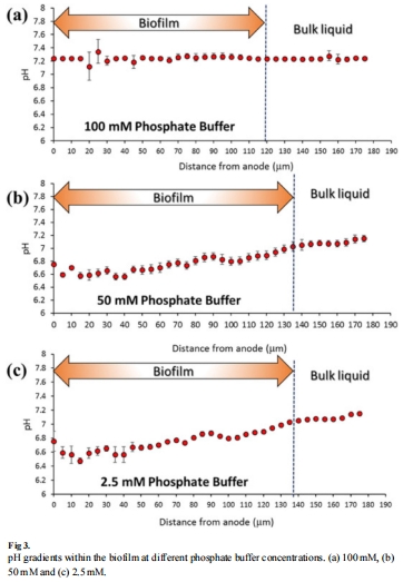 數據來源:圖3(caption: "pH gradients within the biofilm at different phosphate buffer concentrations")。