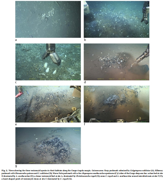 棲息地調查:首先在幾內亞灣的不同深度和地質環境(從600米深的冷泉坑到5000米深的剛果深海扇有機富集區)確定了七個研究站點,并測量了這些站點沉積物和水體的氧氣、硫化物濃度及滲透深度等關鍵化學參數。