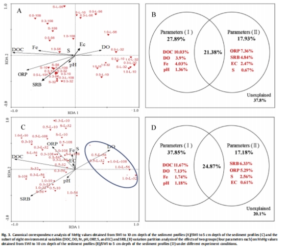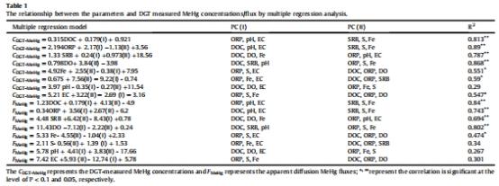 統計分析結果:通過典范對應分析和多元回歸模型,量化了上述多個參數對甲基汞變化的解釋力度。
