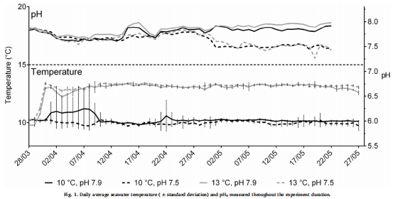 數據來源:文檔圖1展示了整個實驗期間海水溫度和pH的動態變化。