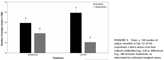 共生藻有效緩解酸化壓力:在單獨酸化條件下,共生型息肉的繁殖率顯著高于非共生型,且蟲黃藻細胞密度更高。這表明升高的CO2濃度促進了蟲黃藻的光合作用,為宿主帶來了“CO2施肥效應”,從而增強了宿主的適應性。