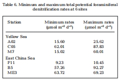 潛在有孔蟲反硝化速率:基于物種特異性的反硝化速率和豐度數據進行了估算。