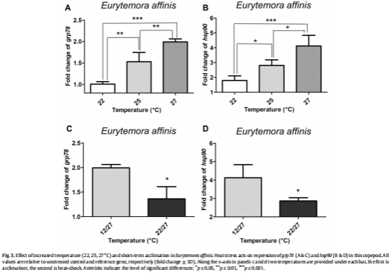 存在顯著的種間差異:兩種橈足類對脅迫的敏感性和應答模式不同。例如,A. tonsa 的HSP反應對“操作處理”也很敏感,而E. affinis 的反應則更特異性地由“熱”本身觸發。這反映了它們不同的生態策略和進化歷史。