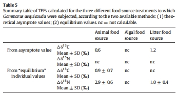 營養富集因子(TEF):計算出的針對不同食物源的△13C和△15N值。