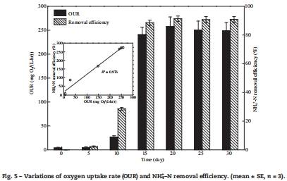 數據來源:OUR隨馴化時間的變化曲線及其與氨氮去除率的正相關關系展示在 文檔圖5中。