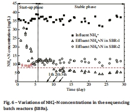 數據來源:兩個SBR反應器出水氨氮濃度隨運行時間的變化對比展示在 文檔圖6中。