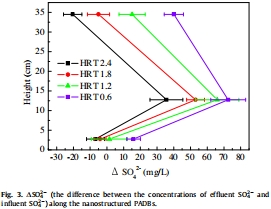 數據來自圖3,顯示了沿生物濾池高度的ΔSO42-(effluent與influent SO42-濃度差)。