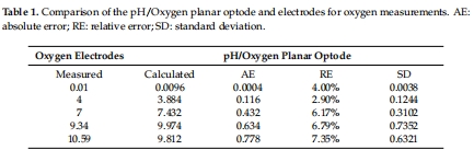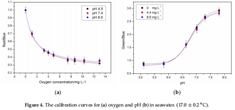 研究意義:量化光極的檢測范圍和精度;顯示低交叉敏感性(氧測量在pH 4.5-9.0幾乎無干擾,pH測量在氧<6 mg/L時干擾可忽略)。