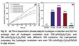 材料有效性:NiS修飾的LaFeO?/g-C?N?異質結實現了高效可見光產氫,最優性能達121 μmol g?1 h?1(表觀量子效率2.01%)。