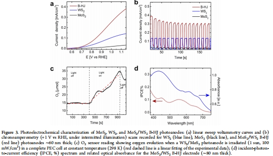材料有效性:化學剝離的MoS?和WS?納米片在無共催化劑條件下可實現(xiàn)光驅(qū)動水氧化,異質(zhì)結(jié)將IPCE提升一個數(shù)量級。