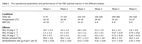 PBS反硝化系統能長期有效去除地下水硝酸鹽,去除率達88-97%,但溫度低于20°C時性能下降。反硝化是主要途徑,出水水質良好。微生物群落以反硝化菌為主,系統需定期補充PBS以維持運行。