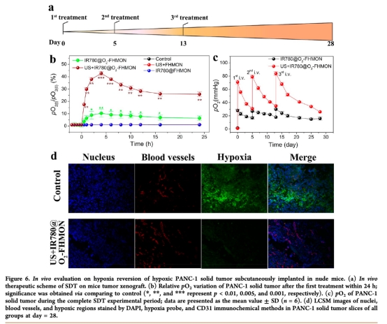 自產(chǎn)氧納米平臺(tái)用于緩解缺氧和打破胰腺癌聲動(dòng)力治療的阻力