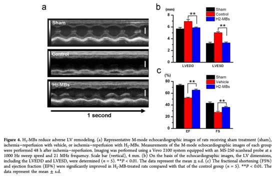 論文摘要指出,心肌缺血再灌注損傷是全球發(fā)病和死亡的主要原因。氫氣作為一種抗氧化劑,在預(yù)防和治療缺血再灌注引起的致命損傷方面顯示出巨大潛力。然而,氫氣在水中溶解度低,導(dǎo)致其在血液和受損組織中的生物利用度差。研究開發(fā)了一種超聲波可見的氫氣遞送系統(tǒng),通過將氫氣加載到微泡中(H2-MBs),以預(yù)防心肌缺血再灌注損傷。該系統(tǒng)在正常溫壓條件下可大幅提高單位體積內(nèi)的氫氣濃度。H2-MBs可通過超聲成像系統(tǒng)進行視覺跟蹤,并能有效釋放治療氣體。在心肌缺血大鼠再灌注開始時進行體內(nèi)系統(tǒng)遞送H2-MBs,結(jié)果顯示梗死面積和病理重塑顯著減少。進一步分析表明,該方法明顯抑制了心肌細胞凋亡,并減少了心肌炎癥和氧化損傷。結(jié)果表明,H2-MBs是一種有前景的氫氣治療應(yīng)用的視覺遞送系統(tǒng)。