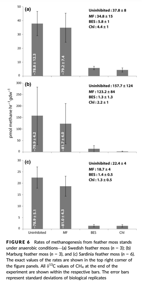 1. 羽毛苔蘚叢含有活躍的產甲烷微生物群落,在好氧和厭氧條件下均產生甲烷,但排放速率低。
