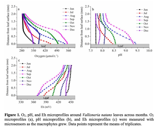 Oxygen, pH, and Eh microprofiles around submerged macrophyte Vallisneria natans response to growing stages
