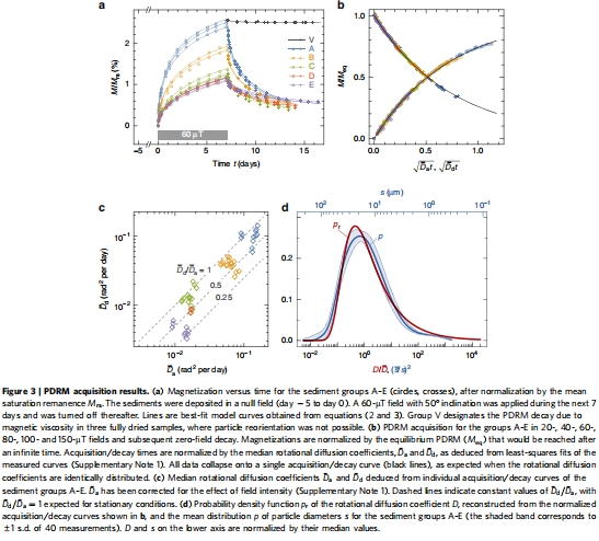 揭示了磁記錄的動力學子:沉積物最終記錄的古地磁強度(NRM)取決于沉降速率和旋轉擴散速率的相對快慢。如果擴散快(相對于顆粒在混合層的停留時間),初始DRM會被PDRM完全替換;如果擴散慢,則DRM得以部分保存。這解釋了自然沉積物中古強度變化的潛在原因。