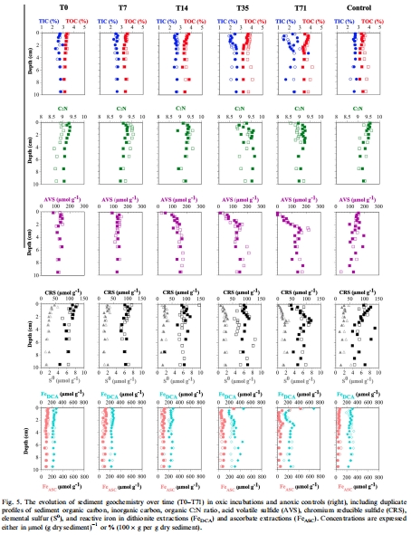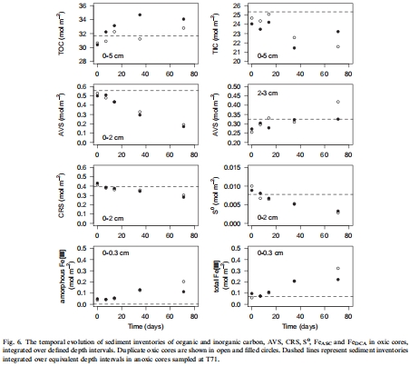 固體相組成變化(TOC, TIC, AVS, Fe氧化物)(來自圖5, 6):
