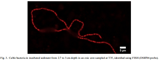微生物群落鑒定:使用熒光原位雜交(FISH)技術確認電纜細菌的存在(圖3)。
