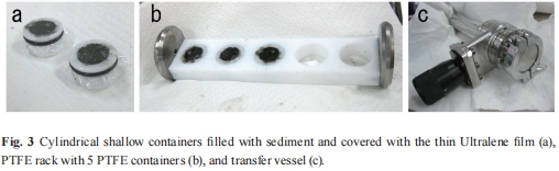 設計了特殊的聚四氟乙烯(PTFE)樣品架和淺槽容器(圖3a, 3b),用于盛放沉積物樣品,并用超薄Ultralene膜密封,以在X射線測量過程中保持樣品(尤其是厭氧樣品)的原始狀態,并通過氮氣傳輸容器(圖3c)運送至光束線。