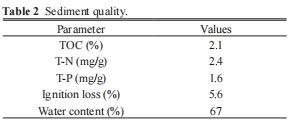 分析了沉積物的基本性質,如元素摩爾比(表1)、沉積物質量參數(表2)和上覆水體質量參數(表3)。