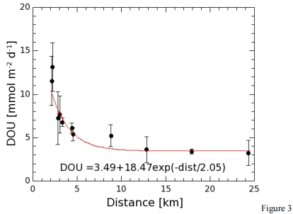 研究意義:OPD的淺層化表明近河口區域好氧呼吸速率高,反映了陸源有機質輸入的影響。氧通量計算(圖3)顯示擴散氧通量(DOU)從河口向海方向指數下降(12.3至3.8 mmol O? m?2 d?1),這直接關聯于有機碳礦化強度,為評估沿海碳匯/源角色提供關鍵參數。