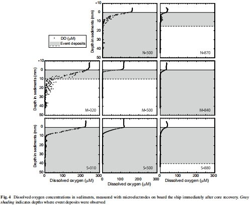溶解氧剖面(來自Fig. 4,由丹麥Unisense微電極測量):