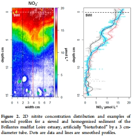 水-沉積物界面上毫米尺度展現亞硝酸鹽硝酸鹽圖像