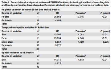 多元方差分析(PERMANOVA):檢驗區域和時空差異(Table 2)。