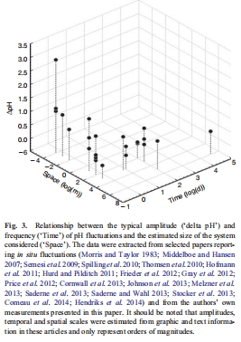數據:圖4顯示,pH變化速率隨尺度減小而增加(微尺度達>0.1單位/分鐘),開闊海變化緩慢。