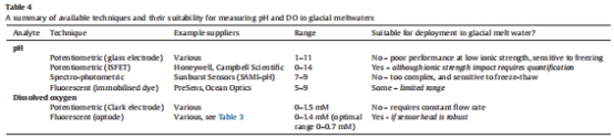 本論文系統(tǒng)綜述了適用于冰凍圈(如冰川、冰蓋)水體化學(xué)監(jiān)測(cè)的原位傳感器技術(shù)。摘要指出,冰川融水是全球生物地球化學(xué)循環(huán)的重要組分,但其低溫(近0℃)、低離子強(qiáng)度(5–100 μS/cm)、高濁度(懸浮物達(dá)1–16 g/L)及凍融循環(huán)等極端條件對(duì)傳統(tǒng)傳感器構(gòu)成挑戰(zhàn)。論文評(píng)估了多種商業(yè)化及定制化傳感器對(duì)關(guān)鍵生物地球化學(xué)參數(shù)(如溶解氧、pH、甲烷、硝酸鹽、磷酸鹽、鐵、錳)的監(jiān)測(cè)能力,并針對(duì)缺乏商用方案的參數(shù)(如低濃度營(yíng)養(yǎng)鹽)討論了新興技術(shù)(如微流控芯片)。最終目標(biāo)是推動(dòng)原位傳感器在極端冰凍圈環(huán)境(如亞冰川湖泊)中的應(yīng)用,以揭示難以觸及區(qū)域的化學(xué)過(guò)程。