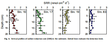 數(shù)據(jù)特征:圖4顯示SRR極低(<1 nmol cm?3 d?1),深度積分SRR僅0.06–0.10 mmol m?2 d?1。