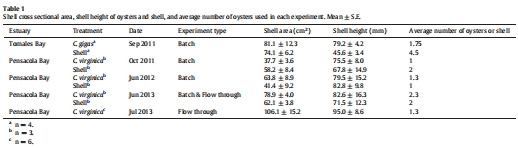 樣本采集:2011-2013年從佛羅里達(dá)Pensacola Bay(C. virginica)和加州Tomales Bay(C. gigas)采集活牡蠣和空殼,確保樣本交叉截面面積一致(Table 1)。