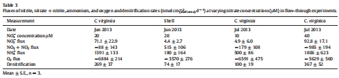 數(shù)據(jù):Fig.2顯示活牡蠣反硝化速率(269±37 nmol N·cm?2·d?1)是空殼(74±17 nmol N·cm?2·d?1)的3.6倍,且與硝酸鹽濃度正相關(guān)。Table 3流式實(shí)驗(yàn)數(shù)據(jù)證實(shí)活牡蠣反硝化占總硝酸鹽吸收的20%。