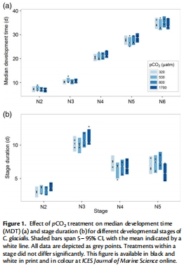研究意義:表明pCO?升高不延緩發(fā)育速度,支持C. glacialis對(duì)酸化脅迫的耐受性,幼體能正常完成變態(tài)發(fā)育。