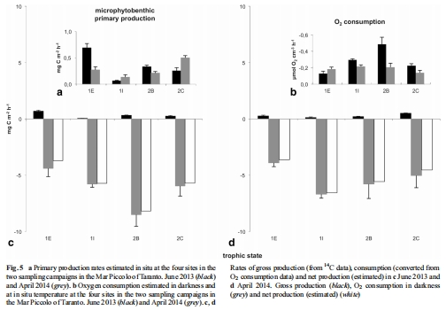 營養(yǎng)狀態(tài):Mar Piccolo底棲系統(tǒng)凈異養(yǎng),初級生產(chǎn)力低下,可能因污染物積累抑制微生物代謝;氧消耗數(shù)據(jù)證實生態(tài)系統(tǒng)能量失衡。