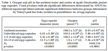 Extreme low oxygen and decreased pH conditions naturally occur within developing squid egg capsules