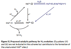 預催化還原峰(圖4a-b):在HER前出現兩個還原峰(E?????=-0.44 V, E?????=-0.54 V vs. NHE, pH 7),分別對應Mo??(S?)和{Mo??=O/H?}缺陷的還原(方程1-2)。