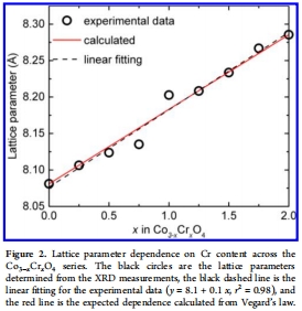 數(shù)據(jù)來源:圖2展示晶格參數(shù)隨Cr含量的變化趨勢,實驗數(shù)據(jù)與Vegard定律計算值高度吻合。