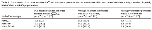 數據來源:表2列出膜反應器一階反應通量(Pd-Au/xGnP: 12.5 μm s?1)與滲透通量(35.0 μm s?1)。