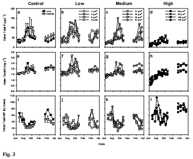 數據來源:圖3a-d顯示對照中宇宙夏季總磷峰值>100 μg L?1,而鐵處理組峰值顯著降低(高劑量時<30 μg L?1);圖4a-b證實鐵劑量與平均總磷濃度負相關(開放水域期R2 = 0.65)。