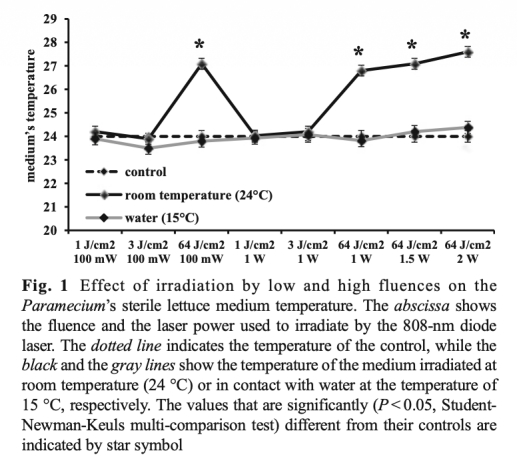 1 808納米、64 J/cm2-1 W激光療法比3 J/cm2-100 mW更能高效增強(qiáng)草履蟲(chóng)線(xiàn)粒體呼吸鏈活動(dòng),且效果不受約3°C溫度變化影響。